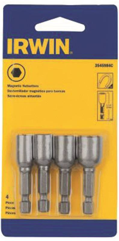 Made of high quality S2 tool steel; 1/4" hex shank. Includes (1) one each: 1/4", 5/16", 3/8" and 7/16".