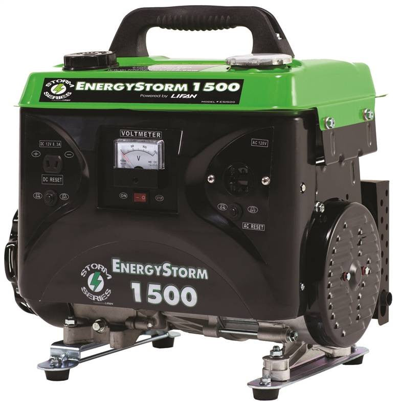 Lifan portable generator specs: 1500 w surge, 1200 w rated, 2-120 v/20 amp AC receptacle. 1-12 v/8.3 amp DC receptacle. 1.5 MHP (97.7 cc) Lifan 4 stroke gasoline engine, recoil start, 1.00 gallon fuel tank, 6 hour run time (at 50 percent load). 63 decibles sound rating.