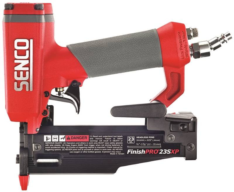 Extra power for use in hard woods. Durable hardened alloy steel driver with rear exhaust, smooth metal cap, and automatically adjusts for different fastener lengths. Easy-open latch,for quick and comfortable loading, soft grip handle plus low load alert. Specs: Height: 6-3/4"; Length: 7.87"; Weight: 2.5 lbs.; Reg. Operating Pressure: 70-100 psi; Mode of Operation: Sequential Actuation, Magazine Capacity: 126 pins. Fastener Specifications; Gauge: 23; Minimum Length: 1/2", Maximum Length: 1-3/8"; Finish: Galvanized. Includes: Case, swivel air plug, wrench and tool oil.