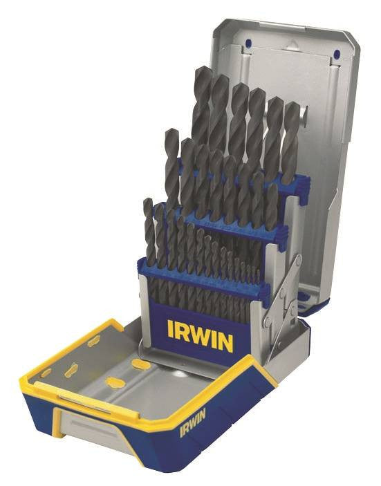 Black oxide treatment resists corrosion and helps prevent bit from rusting. 135 degree split point tip starts on contact. Cuts with less force. Reduced shank above 3/8" allows the use of larger drill bits in a 3/8" chuck. Rubber overmolded case protects kit if dropped. Tap and drill selection chart for convenient reference. Automatic indexing for easy bit access and identification. Removable cartridges; easy to carry bits from case to worksite. Sizes include 1/16" to 1/2" in 1/64" increments.