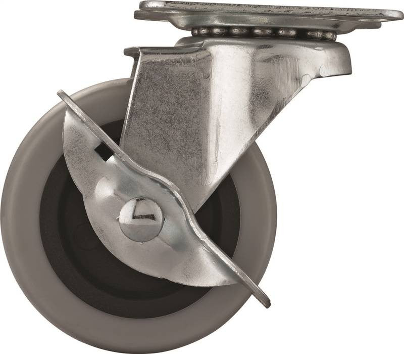Non-marking caster, Grey thermoplastic rubber wheel.