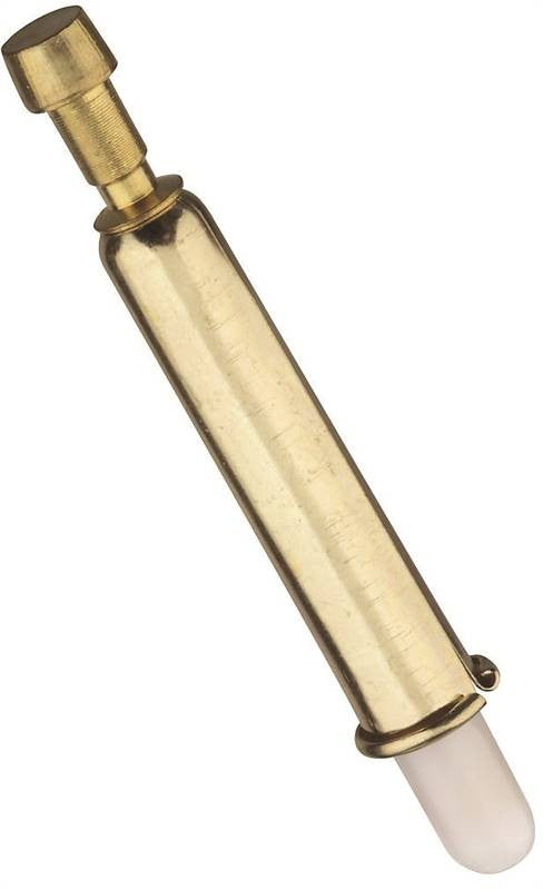 Use for windows and stationary or hinged screens. Made of brass with stainless steel spring. 3-1/4"L x 3/8" bore hole diameter. Bulk packed.
