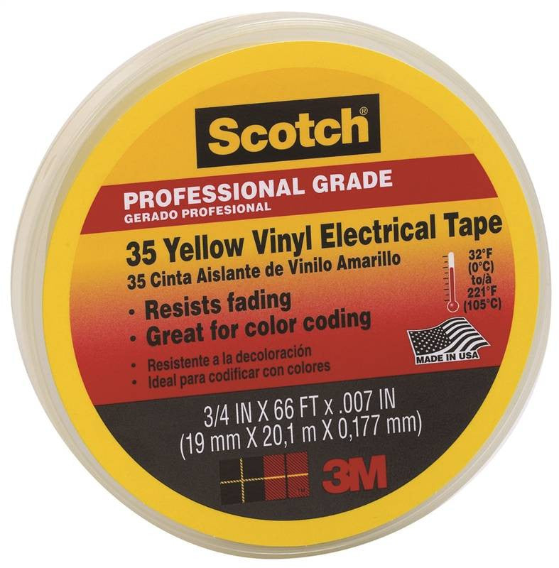 Used in phase identification, color coding leads and piping systems and for marking safety areas. Abrasion and weather resistant, flame-retardant with excellent mechanical and electrical insulation properties. Wraps smoothly and holds tight in cold to 0 degrees F or hot to 220 degrees F. UL Listed and CSA Certified.