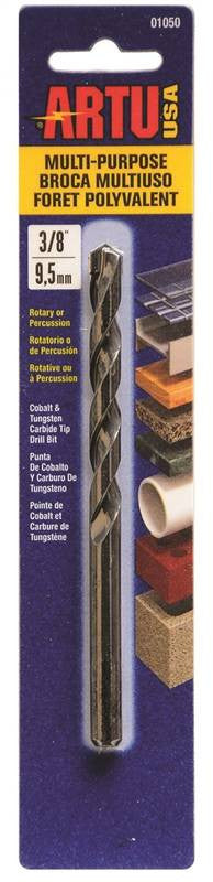 For rotary or percussion drilling. Chrome vanadium steel shank with tungsten carbide/cobalt tip that is resharpenable, and able to withstand drilling temperatures up to 2,000 degrees Fahrenheit; no center punch needed. Use with cordless drills, corded drills and drill presses in applications such as masonry, ceramic tile, concrete, brick, fiberglass, plexiglass, glass, cast metals, hardened steel, granite, marble, woods, plastics. Not recommended for use on mild steel. This includes aluminum, angle iron, copper, galvanized pipe, brass and stainless steel.