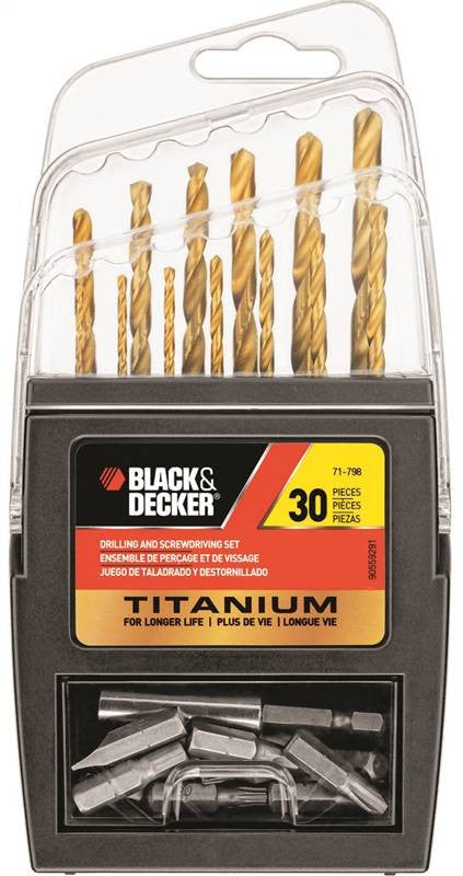 Set contains a total of 30 pieces which includes a variety of drill bit sizes and screwdriving bit tips. Ideal for wood, metal, plastic and masonry projects. Set contains (13) high speed steel drill bits, (16) screwdriving bits and (1) magnetic bit holder. Contained in a handy storage case.