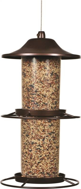 Evenfeed system allows two separate chambers to empty equally. Sure-lock cap system keeps squirrels out.