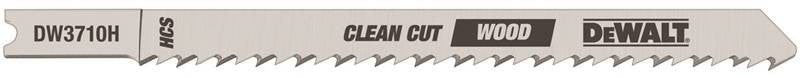 High carbon steel. Reinforced tooth design protects teeth from damage and stays sharper longer. Side chip path helps to quickly remove debris and clear the channel for cleaner and smoother cuts. Fits Dewalt and other universal shank jigsaws. Fine, smooth wood cutting.