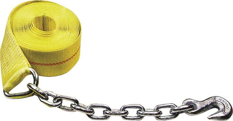 For use with cargo winches to secure loads on flat bed trailers. High density, treated polyester webbing for abrasion resistance and protection from UV rays. Working load limit 5,400 lb. Working Load Limit (WLL) is printed directly on the webbing.