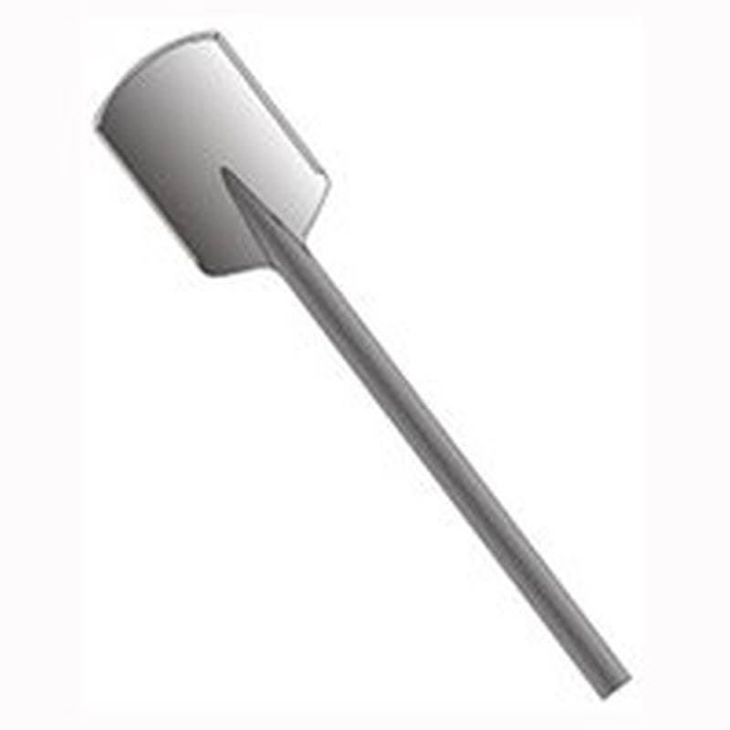 Used in applications such as digging in clay, hard packed gravel or dirt. External collar for use with standard pneumatic hammers, internal locks for Bosch hammer 11304; 5-3/8" with 1-1/8" hex collar.