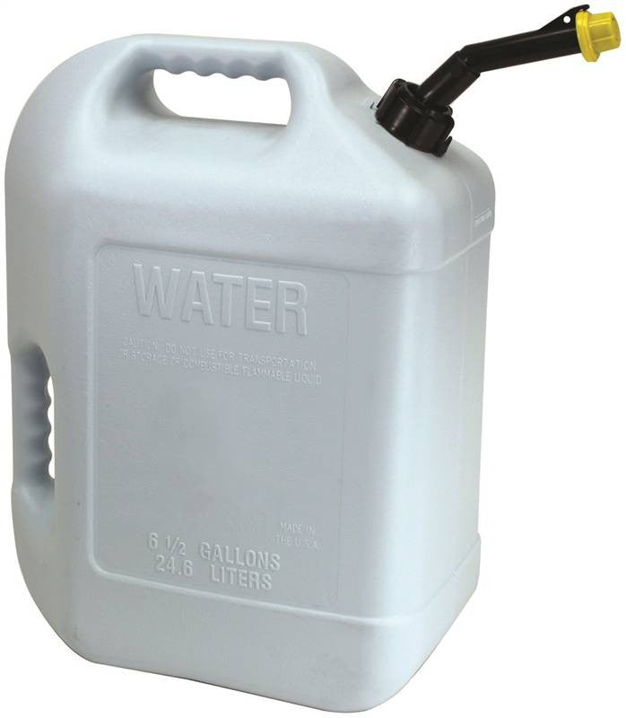 Made of durable, rust- and dent-proof, high-density polyethylene with convenient back and top handles for easier pouring. Self-venting spout. Dimensions: 14.25" x 8.50" x 18.5".