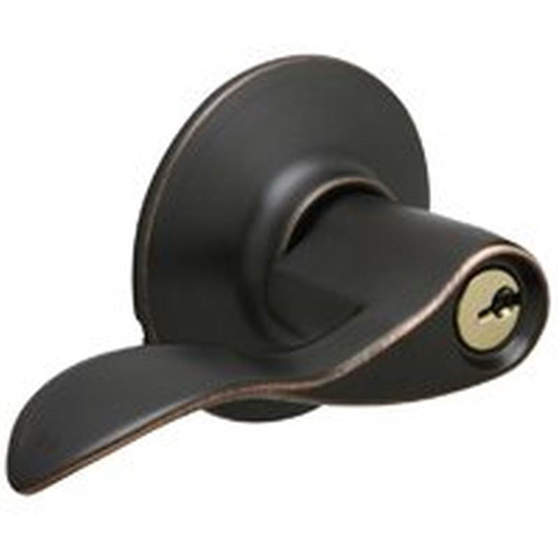 For residential single and multi-family doors. Unlocked or locked by keyed lever outside or turnbutton lever inside; inside lever always unlocked. Zinc based and plated, solid lever designing. Pressure cast zinc tubular lock housing. Key removable outside lever for easy cylinder replacement. 3 piece assembly. All locksets have the same finish for both interior and exterior parts except the Bright Brass finish which has bright brass finish on all interior parts and Ultima Lifetime Anti-Tarnish finish on all exterior parts. DOOR PREP: 2-1/8" crossbore; 7/8" or 1" edge bore; 1" x 2-1/4" latch face. DOOR THICKNESS: 1-3/8" to 1-3/4". CYLINDER: 5-pin tumbler C keyway with nickel silver pins and keys (2). FACEPLATE: 1" x 2-1/4". STRIKES: 2-1/4" full lip. BOLT: 1/2" throw. ANSI/BHMA: Meets 400,000 cycle ANSI A 156.2 Grade 2 requirements. ADA compliant. TRIPLE OPTION UNIVERSAL: Fits all doors; 2-3/4" or 2-3/8" backset; square corner, round corner, or drive-in preps.