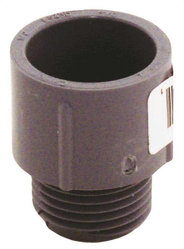 Safe, non-conductive. For adapting schedule 40 non-metallic conduit to boxes, threaded fittings, metallic systems. Male threads on one end, socket end on the other. Will not rust or corrode. UL Listed, RoHS Compliance.