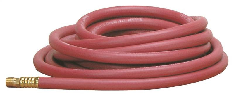 Multiple spiral polyester reinforcements. Kink resistant and flexible in extreme temperatures and brass NPT male fittings; 250 pound working pressure.