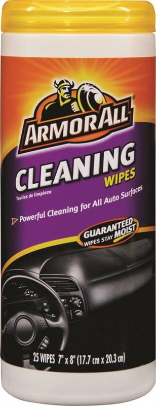 One-step cleaning, formulated to remove tough, ground-in dirt without drying out, damaging or fading surfaces. Cleans dash, vinyl and fabric. Disposable, lint free. Not recommended for glass or painted surface.