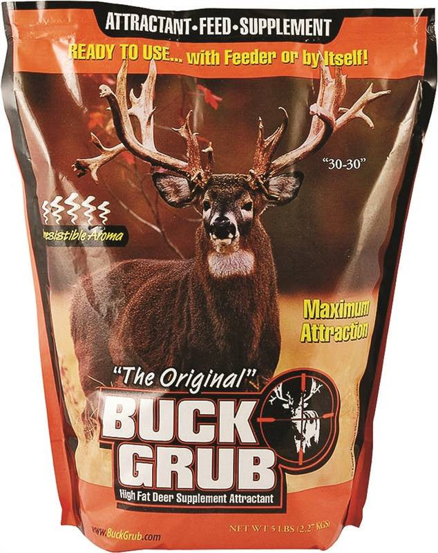 The toasted almond aroma of buck grub not only pulls deer to a desired area, but it holds them there. Incredibly palatable and offers optimal levels of fat, energy and a source of safe fat. Deer love the taste. Promotes herd health and accelerates antler development in bucks of all ages. Ready to use with feeder or by itself.