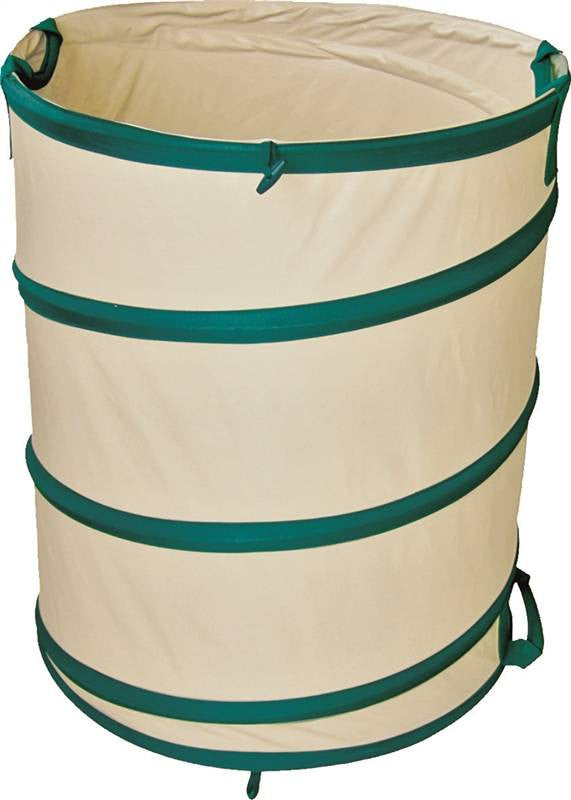 Use for easy filling and emptying. Sturdy pop-up bag stays open. Strong webbing handles for carrying. Collapses for storage. Size: 27"Height x 22"Depth.