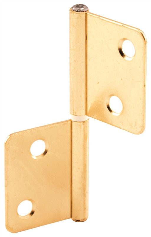 Used by many wardrobe door manufacturers. Allows for non-mortise installation. 1-5/16"W x 1-1/2"H each hinge piece, 3"H overall. Includes 2 hinges and 8 flat head sheet metal screws.
