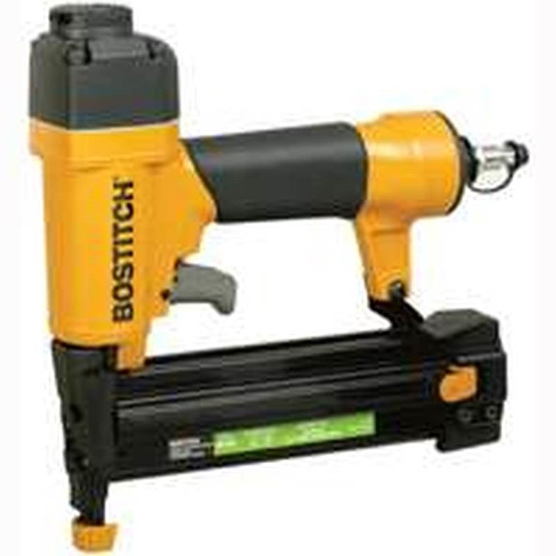 Drives both 18-gauge brads and narrow crown finish staples for ultimate versatility. Adjustable depth guide sets nails to desired depths quickly and conveniently. Tool-free adjustable exhaust conveniently directs exhaust away from the user. Specs: Height: 8.5"; Length: 9.25"; Width: 2"; Weight: 2.6 lbs; Driving Power: 135 Inch Lbs.; Magazine Capacity: 100 Brads or 100 Staples; Operating Pressure: 70-100 PSI; Thread Fitting Type: 1/4" NPT. Fastener Specifications: Range: 5/8" - 1-5/8" 18GA brads, (100) 1/2" to 1-1/2" 18 Gauge Staples. Kit includes: Nailer, 1/4" Air Fitting, 1,000 2" Brad Nails, 1,000 1" Staples, Carrying Case, Hex Wrench, Extra No-Mar Tip and Oil.