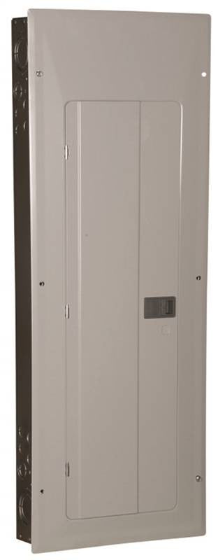 BR style 1-inch loadcenter, main circuit breaker, current design, 200A, single-phase, 50-pole, 50 circuits, 40 spaces, 120/240V, #1-300 kcmil Cu/Al at 60 or 75 degreesC, NEMA 1 enclosure, 6r box size. Metallic, interrupt rating - 10 kAIC. Aluminum bus, three-wire. Includes 3-br120, 1-br230, cover included. 4.5 In x 6.5 in x 11.75 in, 42 lb.