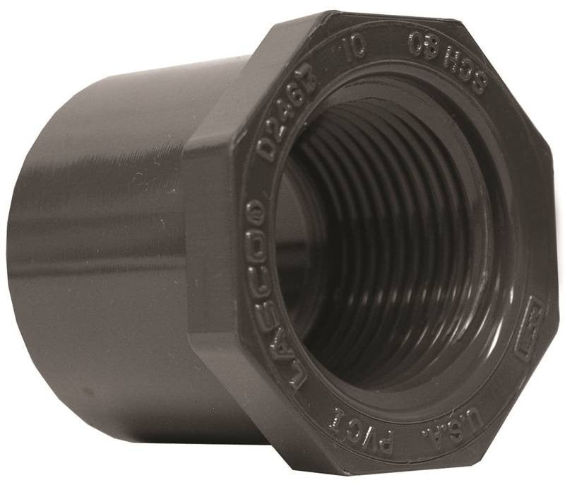 Inserts into fitting hub to reduce to smaller pipe size. PTFE thread tape is recommended for threaded joints.