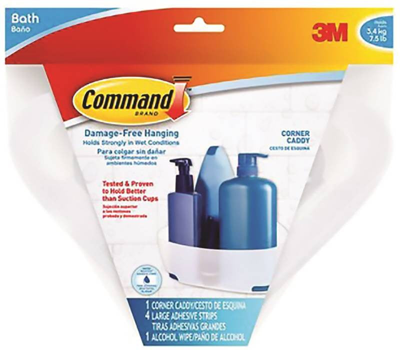 Perfect for shared bathrooms. The caddy stands up to hot, wet and humid environments and sticks to a variety of surfaces, including glass, mirror, tile, fiberglass, wood and painted surfaces. Tested and proven to hold better than suction cups, it is easy to apply and come off cleanly without damage. Cleaning is easy - just remove caddy from mounting base on wall, clean caddy with regular household cleaners and slide back on to mounting base. Repositioning is easy with assorted water resistant refill strips. Great for bathroom organization including guest and kids' bathrooms, renters and dorm life. Contains 1 caddy, 4 mounting bases, 4 large strips. Holds up to 7.5 pounds. 10-1/4"L x 7-1/4"W x 4-3/8"H.
