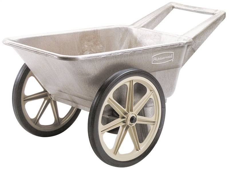 Unassembled. One-piece body construction carries up to 200 pounds fills most agriculture and lawn/garden needs. Semi-pneumatic 20'' x 1.75'' wheels provide easy mobility over most surfaces. Comfortable molded hand grip. Smooth seamless body for easy use and cleaning. Resistant to most farm and lawn/garden chemicals. Reinforcement ribs add impact resistance. 47''L x 27-1/2''W x 24-3/4''H.