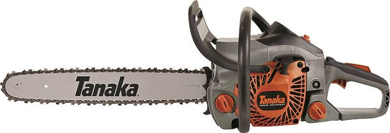 40cc rear handle chain saw with 18'' Oregon bar and chain. 2 stroke engine with S-start pull force reduction system. Also accepts 14'' and 16'' bar and chain. Two bar mounting studs. Inertia activated chain brake. Side access chain tensioner and vibration dampening system. Weighs only 9.7 lbs. Replacement chain Orgill sku no (0783480).