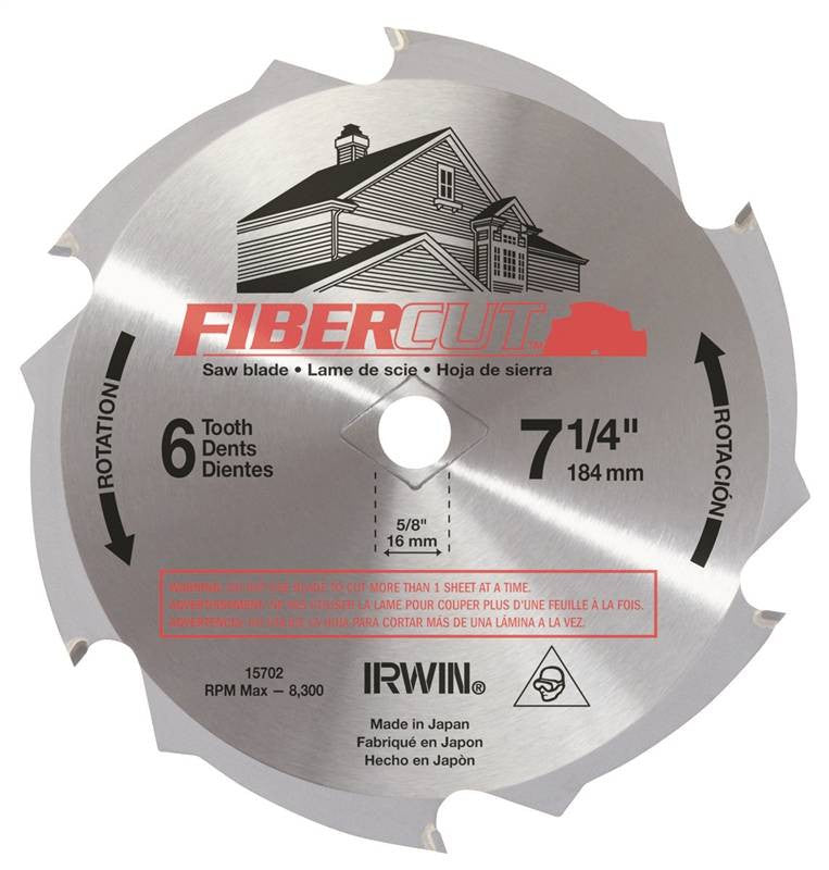 Specifically designed for single sheet cuts of fiber cement material. Shoulder design prevents overfeed and allows for consistent chip removal. Cleaner, faster and more durable than standard carbide tipped blades. Made of hardened and tempered steel for long life. C4 carbide tips for same Fibercut performance as Irwin's diamond tooth, but for single sheet cuts only. Never use to cut stacks; to do so will cause the blade to dull immediately. Square tooth design for heavy-cutting conditions.