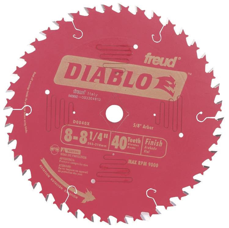 Thin kerf, .094", saw blade for miter saws and table saws. Laser cut stabilizer vents. Durable MicroGrain Titanium Carbide for razor sharp cuts and long life. PermaShield permanent coating prevents gumming and corrosion. Alternate tooth bevel, .063" plate, 9,000 max rpm.