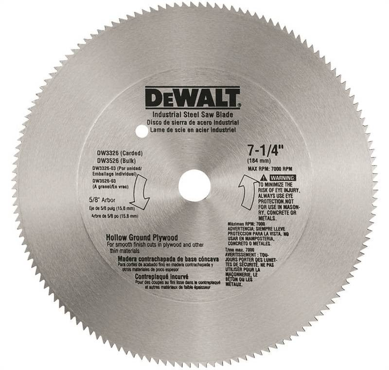 Thin kerf, .065", portable construction saw blades. Precision sharpened teeth for fast, smooth cuts and longer life. Blade coating prevents rust and reduces friction. Thicker body provides increased durability in heavy duty applications. Fully hardened steel body prevents blade warping and binding; . 075" plate, 7,000 RPM.