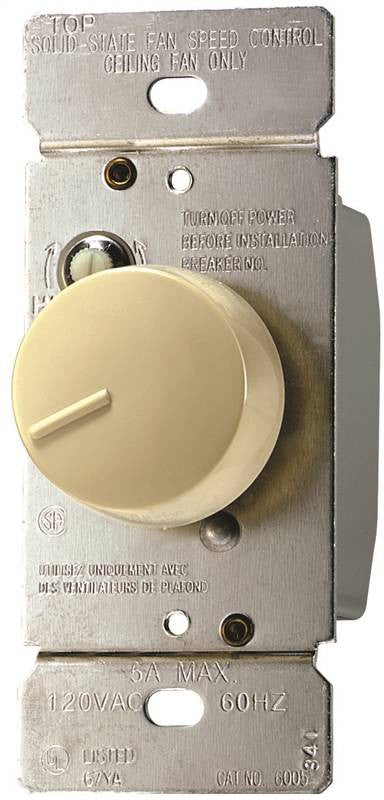 Use to moderate air flow and room temperature anywhere. Replaces any standard wall switch. Rated at 5 amp to allow several fans to operate simultaneously. Designed to operate ceiling fans using shaded pole or split capacitor motors only. UL Listed.