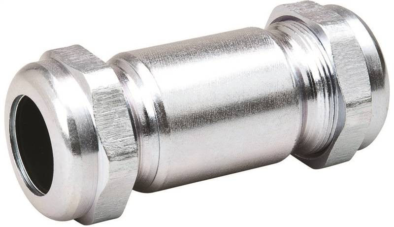 Hydroformed steel body, rubber compression gasket, and metal friction ring, rated up to 125 PSI at 210 degrees F., iron pipe size for piping or repairs on galvanized pipe.