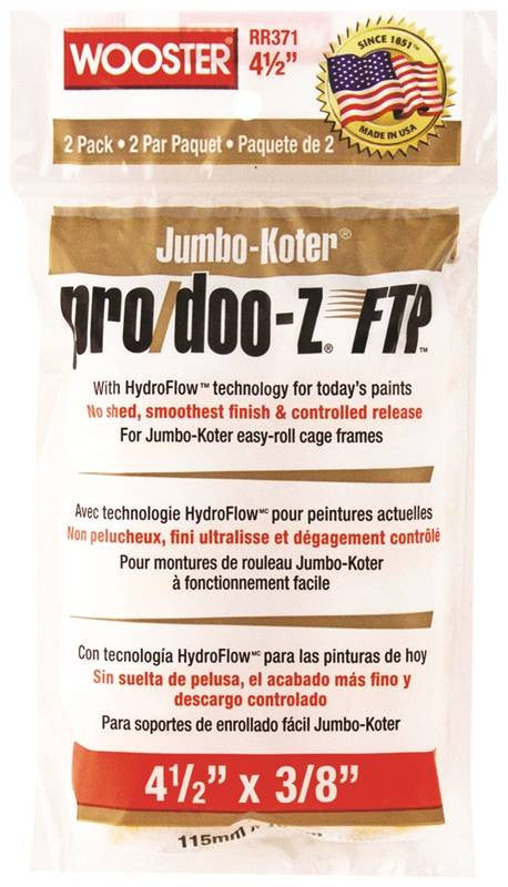 No shed and high density for flat, eggshell, satin, semi-gloss, gloss, enamels, primers, urethanes, epoxies. HydroFlow technology provides controlled release to improve paint flow. White fabric with a double golden pinstripe for smoothest finish, greater capacity. Green double-thick polypropylene core resists water, solvents, and cracking.
