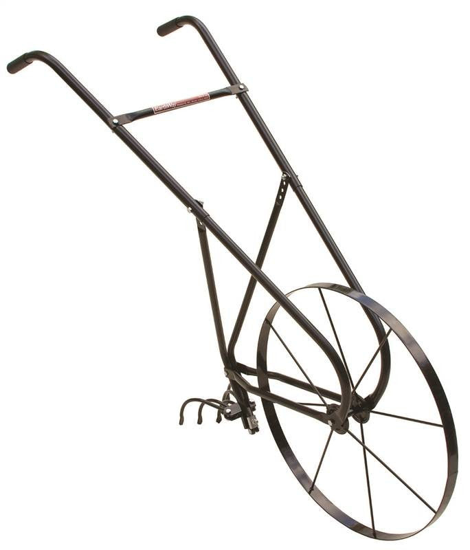 Ideal for light plowing, hilling, furrowing and cultivating. Versatile. Handles and framing constructed of heavy-duty powder coated tubular steel for long life. 24'' steel wheel makes operating through the soil effortlessly and quickly. 3 position adjustable height handle and tool bar depth makes it a easy fit to individual needs. Hours of comfortable use. Easy change tool bar for quick tool installation. Comes with furrow and moldboard plow blades.