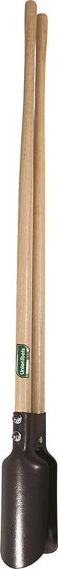 Better for digging in rocky, drier soils. One piece digger blade tip. Specially designed high-carbon steel blade holds dirt better than conventional diggers. Oval die-stamped indentations for a stiffer blade. Extra large hinge bolt for improved durability. Handle mounting bolts with outside nuts for tightening. Round shank Ash handles.