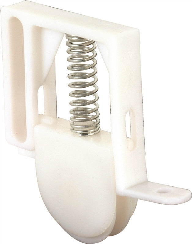 Nylon housing and yoke; wheel with center groove; spring activated; used as top and bottom roller on Academy Uni-fit doors.Roller Edge Type: Concave. With screws.