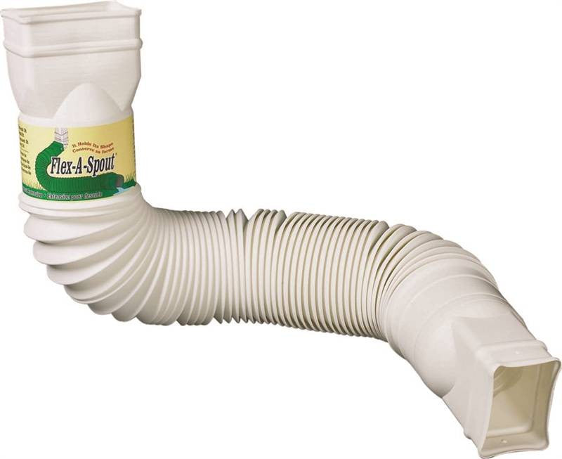 Flexible tube easily attaches to the downspout with sheet metal screws (not included). Can be bent into the desired water flow direction, or can be buried out of sight. Retains shape. Fits 2" x 3" or 3" x 4" downspouts. Expands from 22" to 55", to get water further away from the foundation. Two or more sections can be snapped together to get longer lengths.