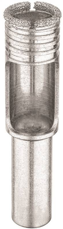 Welded diamond tip for durability. Provides a quick, clean way to precisely drill through the densest, most abrasive tiles, including glazed ceramic and rock hard porcelain (both solid body and glazed). Reverse spiral threads permit continuous water cooling, so you can run the bits at higher speeds without fear of overheating. Core-ejection slot removes a plug of waste material, which is ideal for repetitive hole boring jobs.