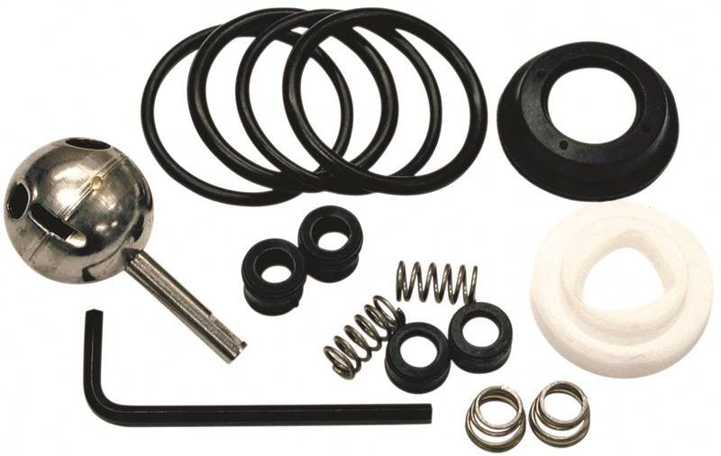 Repair Kit includes: 2 No.35739 #25 and 2 No.35748 #34 o-rings, 1 No.88104 cam assembly, 1 ball assembly, and 2 seat & spring assemblies. For most popular kitchen faucets with lever-style handles manufactured prior to 1976. Carded.