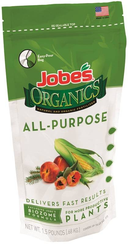 All-purpose plant food contains 100 percent organic formula. Increases micro organisms activity for a healthier, living soil. Easy to use granular fertilizer and soil amendment. Breaks down organic material faster. Contains Biozome which quickly breaks down even complex materials and minerals into basic nutrients and trace elements that plants can readily absorb. Fast acting. Covers up to 120 square feet.