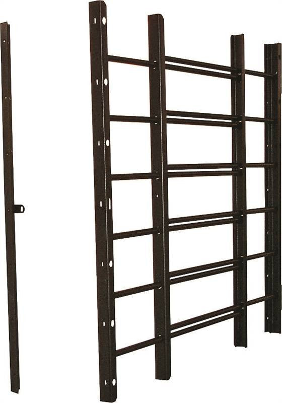 Helps protect against intruders and window falls. Adjustable width for most window requirements. Made of solid and tubular steel construction. Engineered for fixed and pivoting installations. Non reversing safety screws and window stops included. 22-3/4e to 42-1/2e W.