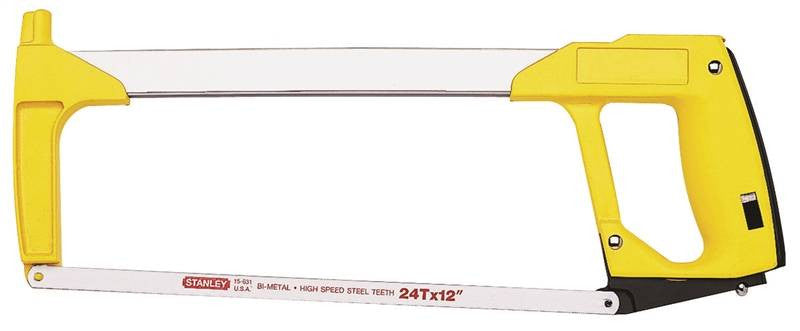 Fully adjustable tension, holds blade up to 32,000 PSI, blade storage in frame. Quick-release, blade-changing mechanism, tension guide on handle lever, 3-7/8" throat depth. Hacksaw or reciprocating blades extended out nose of frame can be locked into place for tight clearance work.