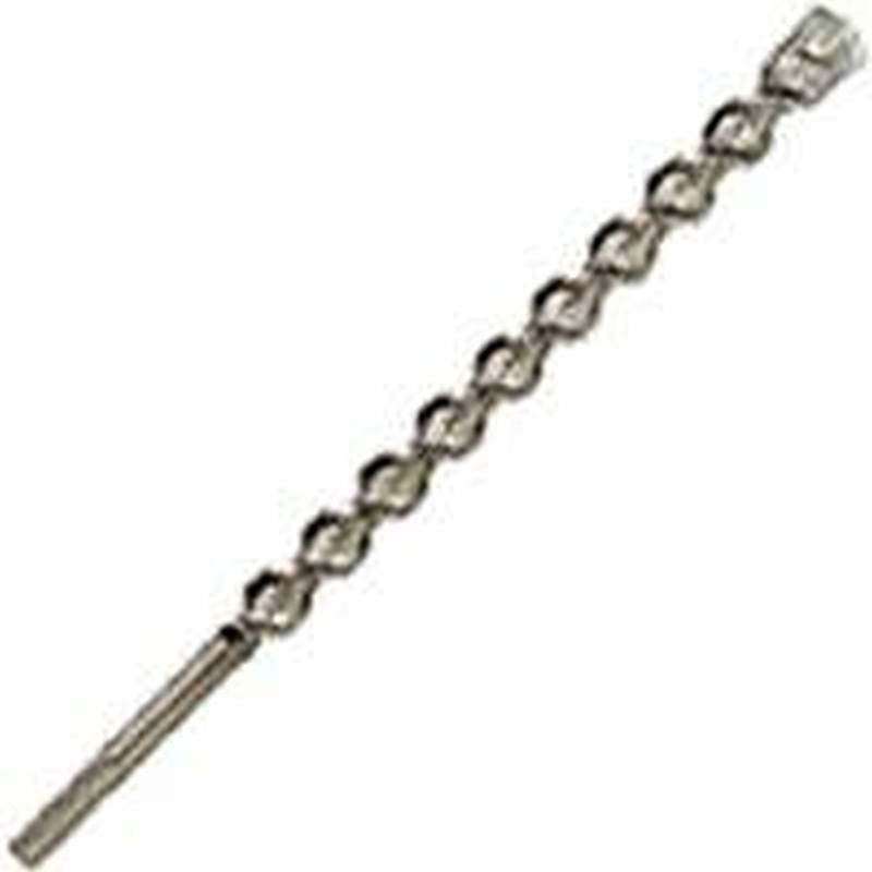 Flute geometry removes dust from the hole quicker for fast drilling and long life. Shot peened, double-tempered finish reduces breakage. Copper braze material gives high heat resistance for reduced tip loss. Chrome vanadium shaft through-hardened to 50-53HrC. Fits all spline rotary hammers.