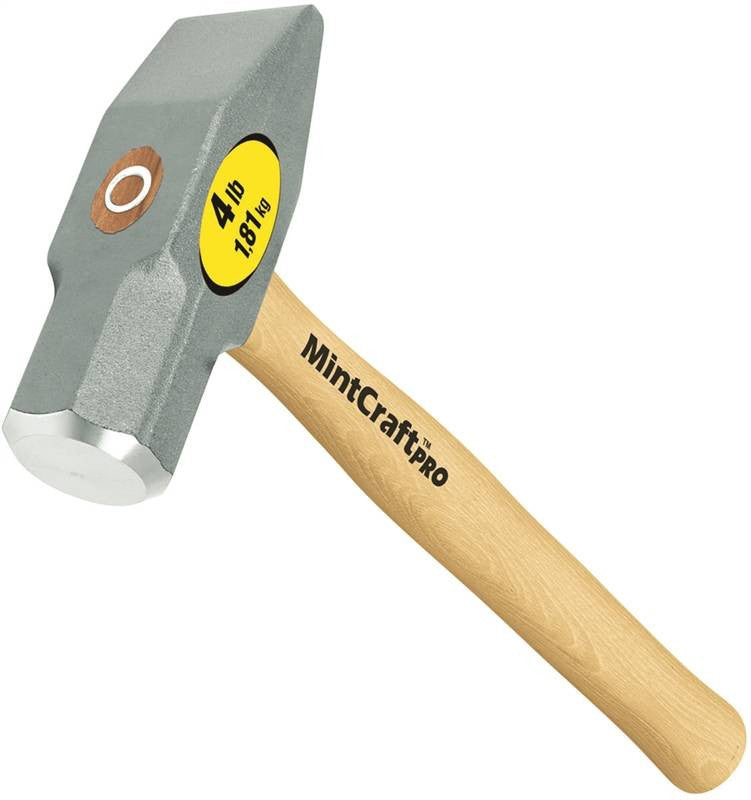 Drop forged, heat treated steel head with polished striking faces and hickory handle.