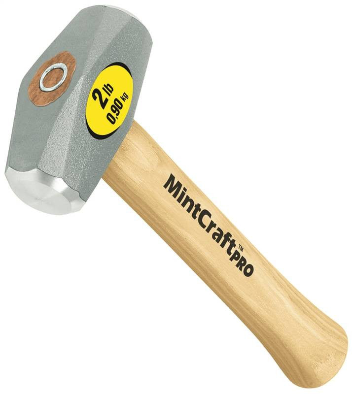 Drop forged, heat treated steel head, hickory handle and polished double striking faces.