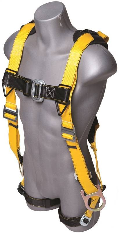Specifically designed with five points of adjustment and stretch ability in the shoulders/back; product includes: (1) quick adjust torso buckles, (2) lanyard keepers and an impact indicator; model's size is built specifically for individuals whose height ranges from 5'2" to 6'8" and whose weight ranges from 220 to 360 pounds; this version of the "Seraph Universal Harness" possesses side D-rings. Sizes: XL-XXL.