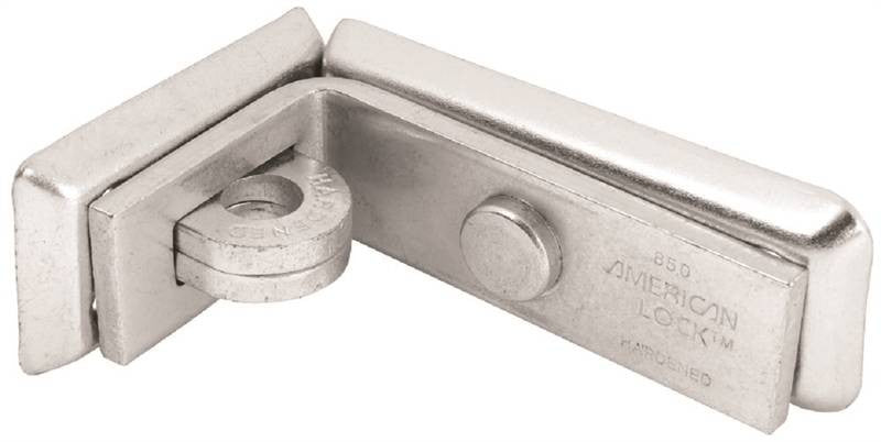 Hardened steel staple resists cutting, sawing, and hammering. Zinc plated hardened steel for added strength and weatherability. Mounting hardware included for installation. Applications: trailers, van doors, garages, sheds, barns, storage buildings, vending machines, utility rooms, and warehouse doors. Accepts shackle diameter up to 7/16".