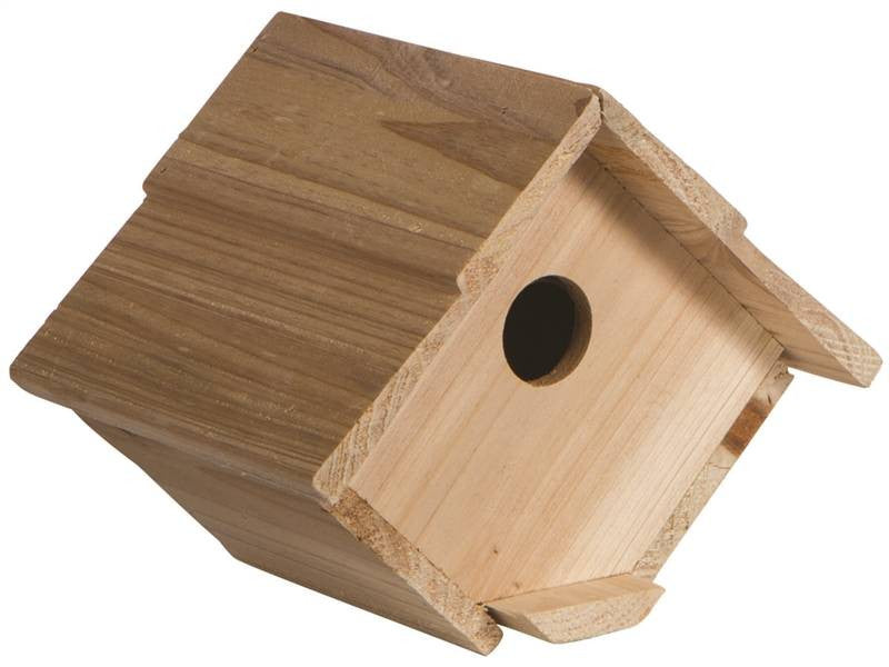 The Cedar Wren House is a perfect size to attract wrens to your backyard. Measuring 7.25 x 6 x 6.25 inches high, the durable cedar construction and tiered roof is built to last. Hanging this birdhouse is easy with the two screw eyes included. A removable base keeps the nesting area clean and tidy.