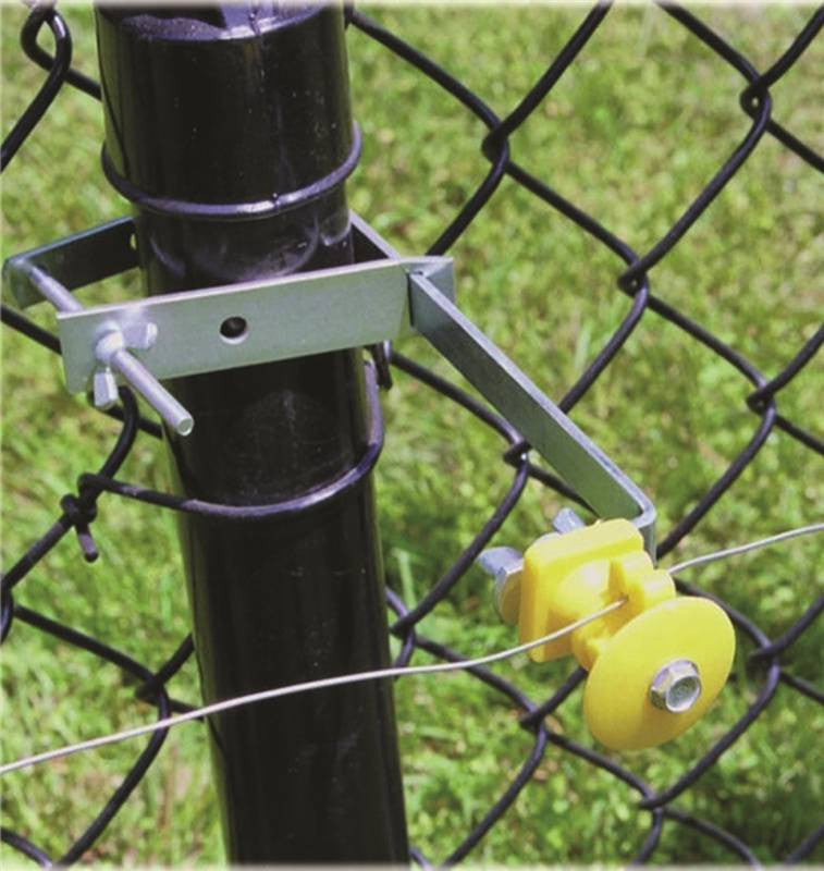 Fastens electrified wire to round or square post fence without losing energy through the post. Can be used on chain link fence. Extends wire 6" from post.