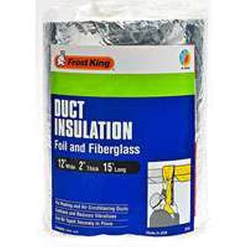 Foil and fiberglass wrap for heating and air conditioning ducts. Cushions and reduces vibrations. Can be taped securely in place. 12" Wide x 2" Thick x 15' Long.